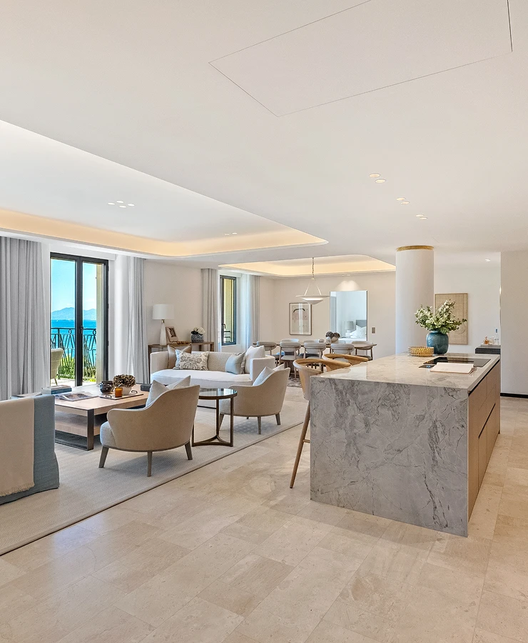 The Apartments enjoy spectacular views of the Mediterranean and the surrounding landscaped gardens. Designed for open-plan living and adorned with inviting terraces, these one to four-bedroom residences also have access to exclusive wellness facilities and concierge services.